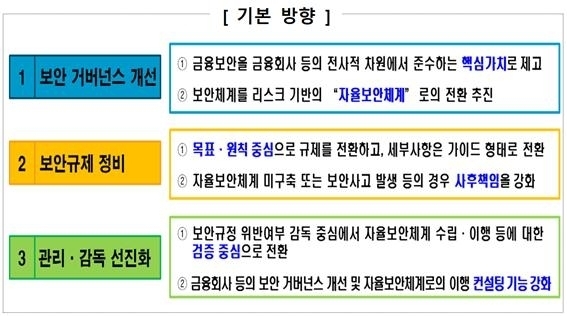 금융 감독 당국이 과거처럼 포지티브 방식으로 금융 보안을 일일이 규제하는 것은 더 이상 실효적이지 않으며, 이미 금융권이 직면하고 있는 보안 위협의 범위 또한 너무 넓어져버렸다는 인식에서 출발한 것이다.